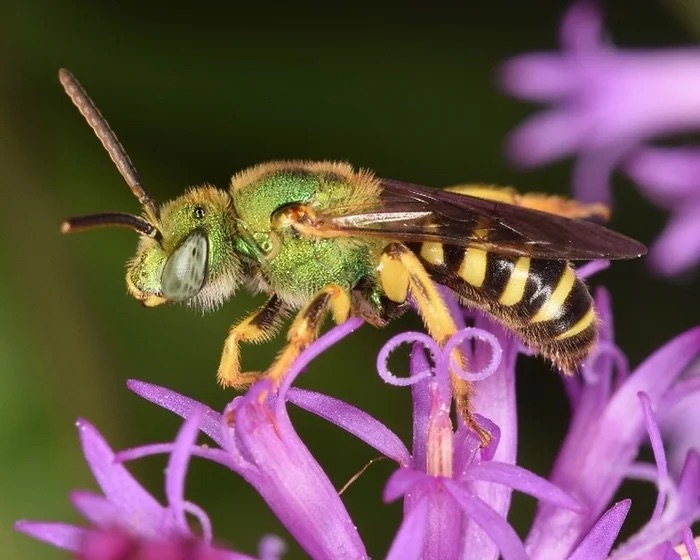 This striking metallic green bee is Toronto’s official bee, though there are other sweat bee species in Ontario that closely resemble it. As the name suggests, these bees are attracted to perspiration and they will often land on exposed skin to consume sweat. They are, however, relatively docile. If you find a sweat bee has landed on you, it is best not to swat at it as that may provoke it into stinging.